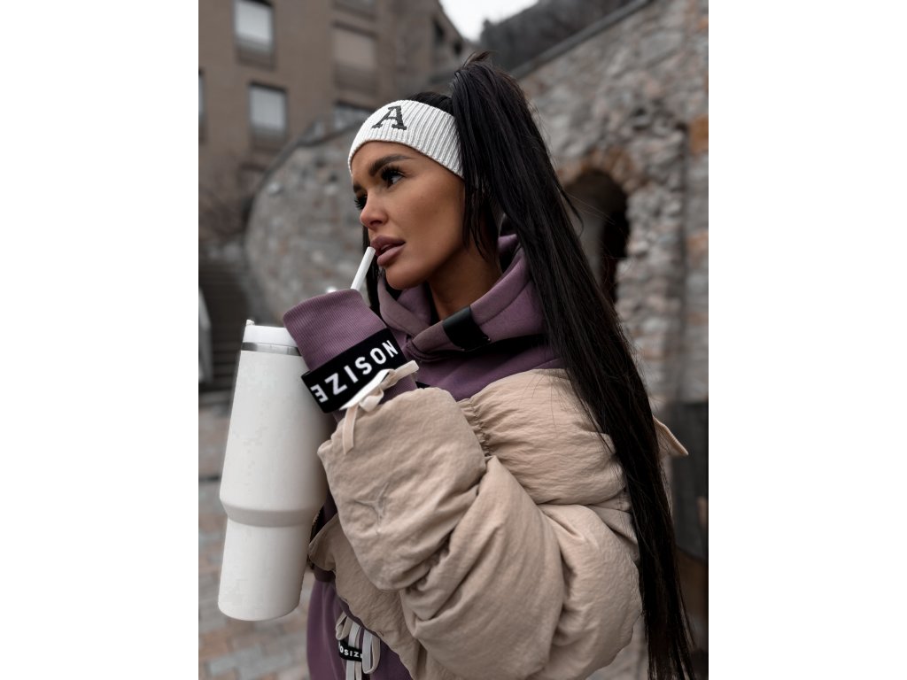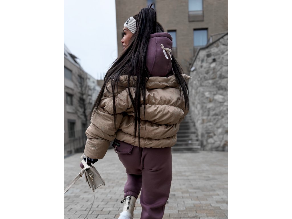 - velvet beige drawstring on the hood