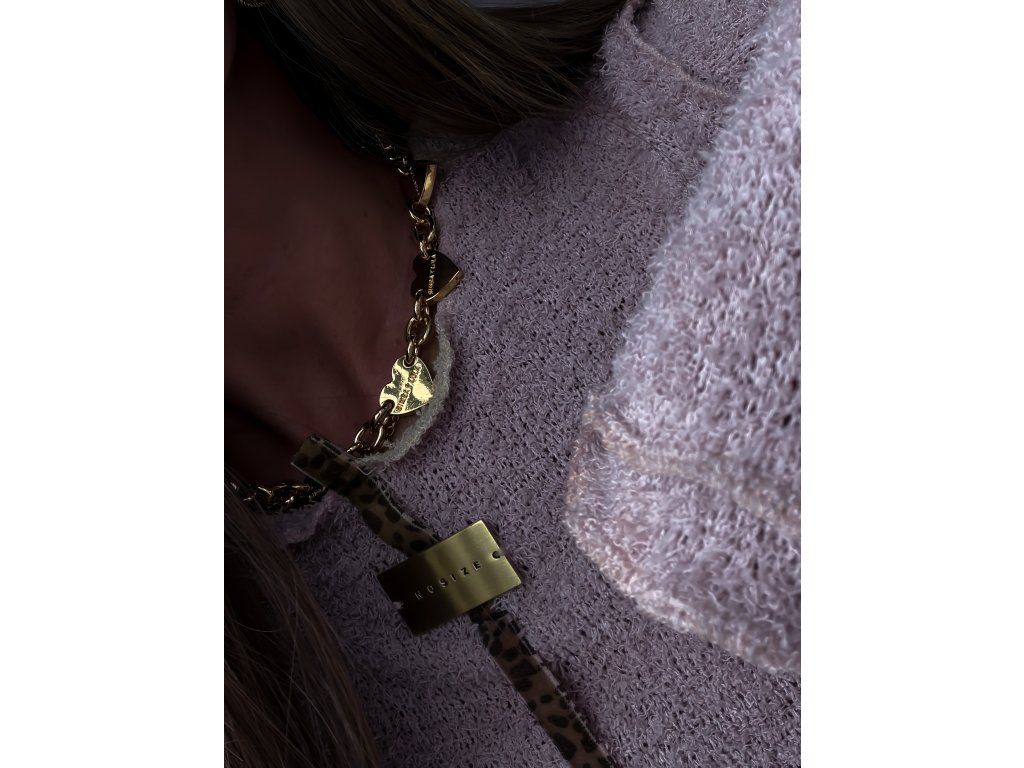 - zamatová leopardia šnúrka v prednej časti s kovovým štítkom