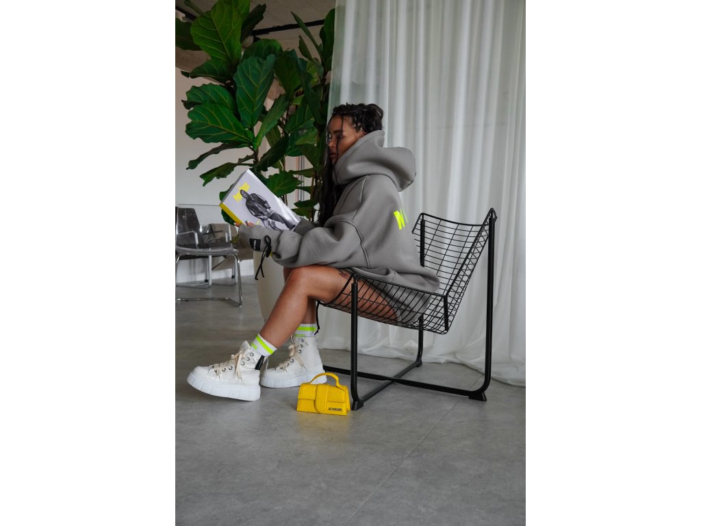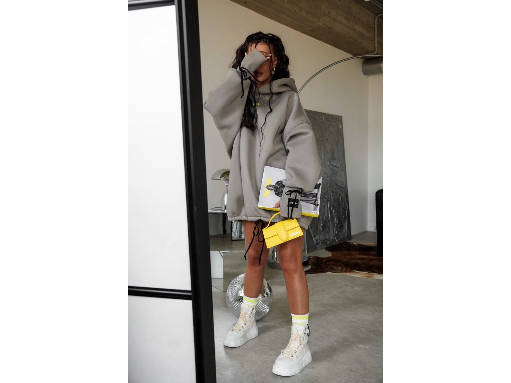 Ultra Oversize mikina s mašličkami a neónovým nápisom.