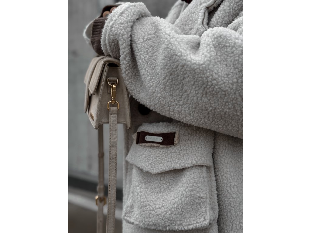 - semišová hnedá aplikácia s kovovým štítkom